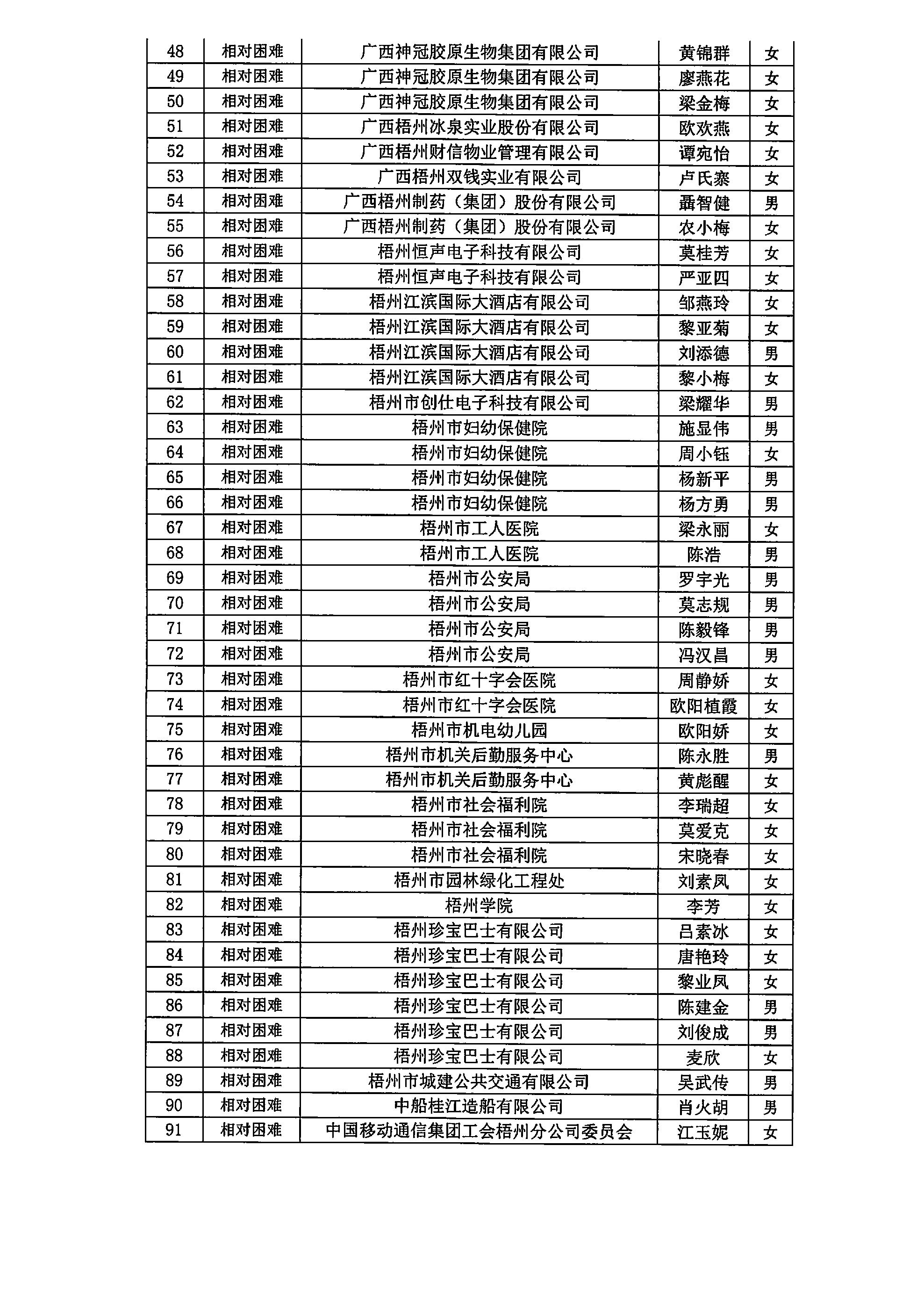 困難職工公示