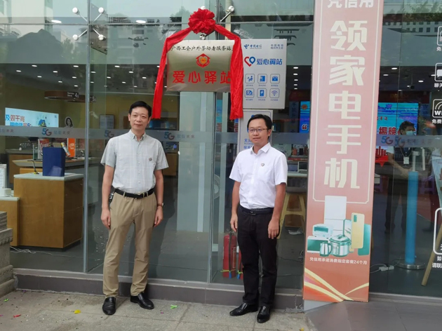近日,梧州市總工會和電信梧州分公司共建的“愛心驛站”正式投入使用。市總工會權(quán)益保障部負(fù)責(zé)人和中國電信梧州分公司副總經(jīng)理馬堅毅共同為新落成的“愛心驛站”揭幕,并為驛站店內(nèi)6名愛心大使頌發(fā)證書。