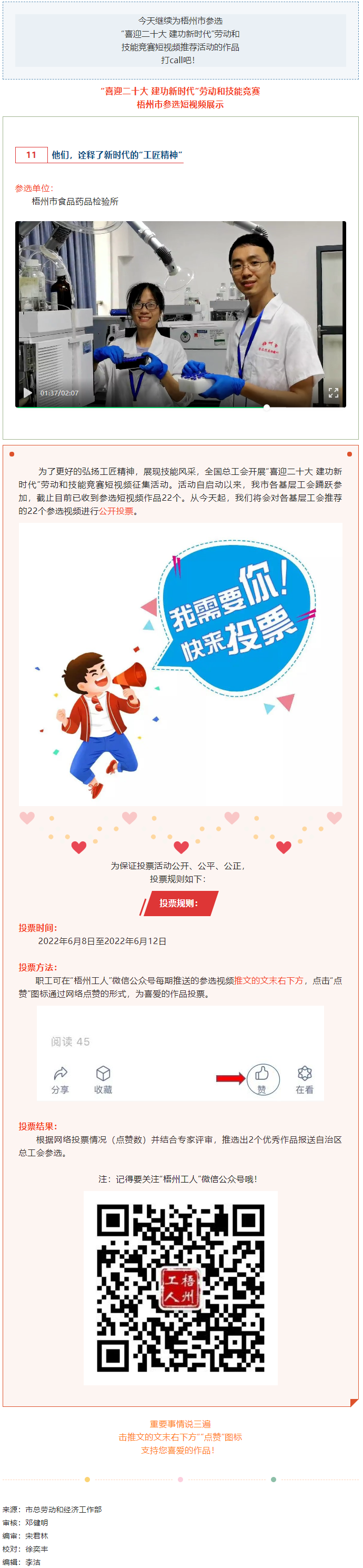 梧州市食品藥品檢驗所參選作品丨“喜迎二十大 建功新時代” 勞動和技能競賽短視頻投票活動開始啦!