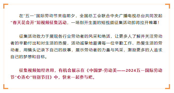全總、央視發(fā)起“春天花會(huì)開(kāi)” 短視頻征集!