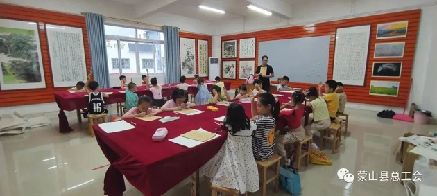 為充分發(fā)揮工會陣地服務(wù)作用,切實(shí)為職工辦好事、辦實(shí)事。近日,蒙山縣總工會開展首期公益培訓(xùn)志愿服務(wù)活動,活動面向我縣6至16歲的職工子女,培訓(xùn)內(nèi)容包括硬筆書法、毛筆書法、簡筆畫及國畫,每個培訓(xùn)班招收24名學(xué)員,每期培訓(xùn)包括12課時。6月17日在縣總工會綜合大樓培訓(xùn)班正式啟動,培訓(xùn)聘請專業(yè)書法、美術(shù)老師,為90多名書法、美術(shù)愛好者授課。